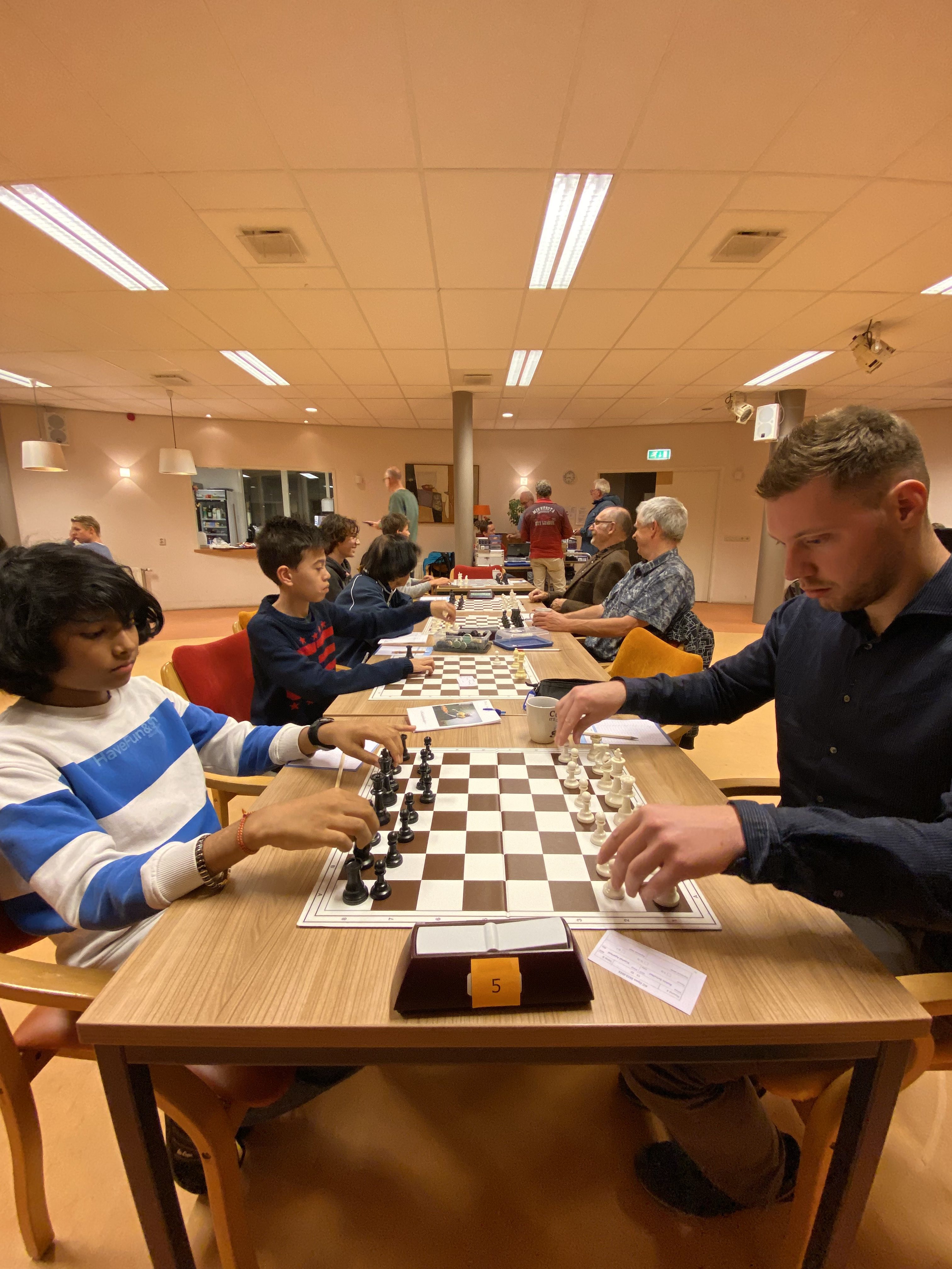 Langzaam begint er tekening te komen in het veld. Nu 3 koplopers: Murat, Jurriaan en Michiel. Jeannot, Frans, Pranav en Frank volgen op een half punt. Mooie combinatie van jeugd, net geen jeugd meer, en “ervaring”.